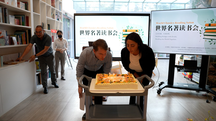 今年4月,中國外文局成立外專工作領導小組和外專辦。中國外文局局長杜占元明確要求,外專辦要成為“外專之家”,多為外國專家創造相互溝通交流的機會,多聽取外國專家意見建議,努力為外國專家工作和生活提供必要保障。本次“世界名著讀書會”活動正是落實局領導要求,繼“茶文化”活動之后,再次為外國專家策劃組織的交流活動。