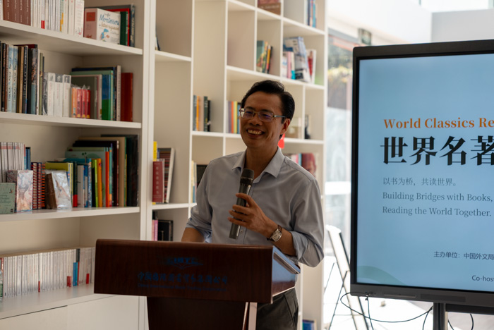 讀書會以“以書為橋,共讀世界”為主題,聚焦文學打破文化隔閡、傳遞人類共同價值的作用。余應福在致辭中表示,今年是習近平總書記給外文出版社外國專家回信三周年,總書記強調翻譯是促進人類文明交流的重要工作。而文學作為人類精神的共同財富,更是連接不同文明的“心靈橋梁”。中國外文局始終以“講好中國故事、促進文明互鑒”為使命,此次讀書會既是“外專之家”建設的重要實踐,也是對“全國讀書節”的積極響應。同時他還通報了外文局近期《習近平談治國理政》第五卷全球發行、第二屆蘭花獎舉辦等重點工作成果。