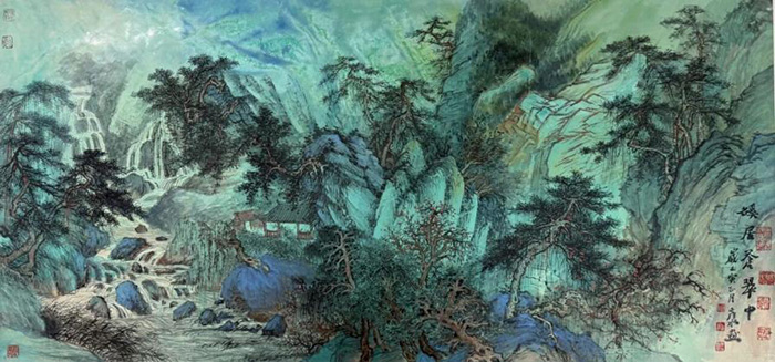 秋日的溫暖厚重,恰與劉彥水山水畫中沉雄蒼茫的意境相映。他的筆墨間,既有對傳統的虔誠傳承——從五代宋元的風骨到黃賓虹、李可染的氣韻,皆在“心誠、手勤、多思”的實踐中化為己用;更有對自然的深刻體悟——踏遍山河的寫生稿,讓每一寸山石、每一株林木都飽含生機,如秋日里蓬勃的生命張力。濃淡交織的墨色勾勒峰巒疊嶂的浩然氣象,靈動灑脫的潑彩暈染云蒸霞蔚的鮮活意境,在他的山水世界里,傳統與自然達成了完美共鳴。