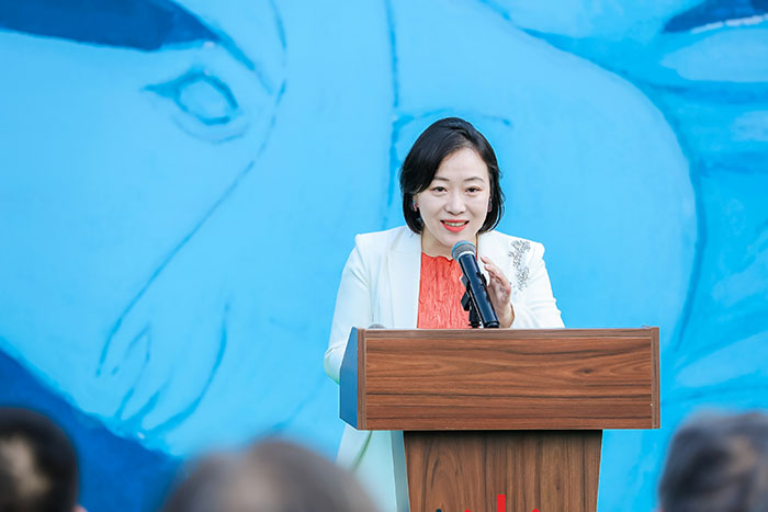 覃川在致辭中表示,從“心向天宇”的展覽作品,可以看到劉巨德先生把美從人性和自然的最深處不斷的挖掘和展示出來。他傳承了清華美院裝飾藝術的傳統,把西方的現代藝術和中國的傳統藝術相結合,在比較中尋找它們的共同點,在相互對話當中探索新的藝術發展方向。劉巨德先生在“為藝”方面“自然純真、天人合一”,在“為學”方面“無問西東、融會貫通”,在“為人”方面“自強不息、厚德載物”,始終以赤子之心追求藝術理想,為清華美院的藝術教育貢獻了獨特力量。