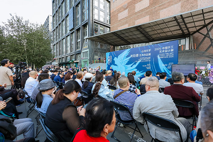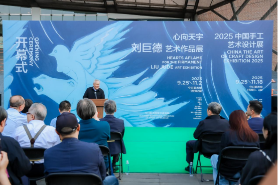 才大穎在致辭中表示,“心向天宇——劉巨德藝術作品展”與“2025中國手工藝術設計展”同時開幕,可以從材美、工巧、氣韻、時宜的視角,回望工藝美術的振興之路?!靶南蛱煊睢钡恼褂[作品,體現了劉巨德先生對氣韻與時宜的藝術理解,為傳統工藝如何當代表達樹立了一個時代標桿。劉巨德先生創意、創新、創造的敘事表達,將審美趣味與文化、藝術精神融入時代脈動,并在引領中不斷開拓新的藝術境界。