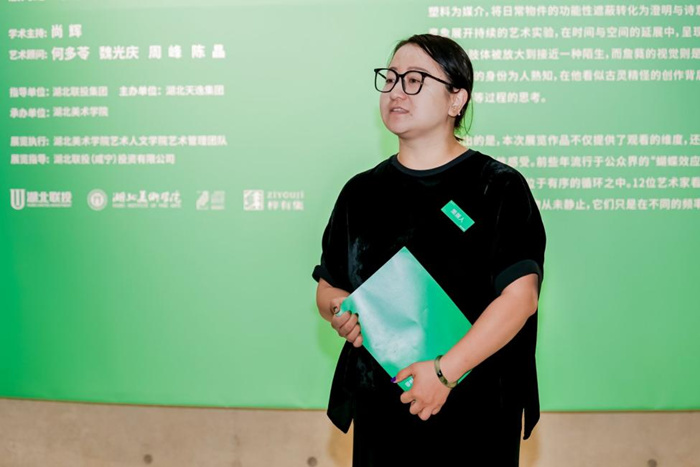 湖北天逸集團有限公司黨委副書記、執行總經理許小鋒對到場嘉賓表示熱烈歡迎。他指出:“‘循環·生息志’的展覽主題與梓有集‘自然力與生命力’的核心理念高度契合,感謝湖北美術學院的大力支持。本次展覽匯聚了12位藝術家的作品,將抽象哲思具象呈現,是輕美學理念與藝術創作的深度共鳴,旨在激發公眾藝術熱愛,傳遞循環生息的理念?!?/p>