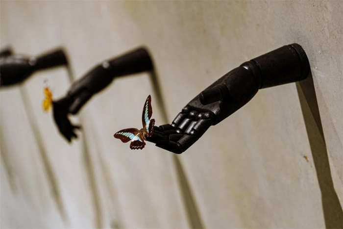 此次展覽作為湖北美術學院建校105周年活動之一,覆蓋裝置、繪畫、影像、綜合材料等多個藝術領域,其作品既展現個體創作特色,又共同呼應“循環?生息”的時代主題。12位藝術家通過藝術語言串聯起自然、生命、傳統與當代的關聯,呼應“蝴蝶效應”所蘊含的萬物互聯理念,為觀眾帶來了一場兼具思想深度與視覺沖擊力的藝術盛宴。