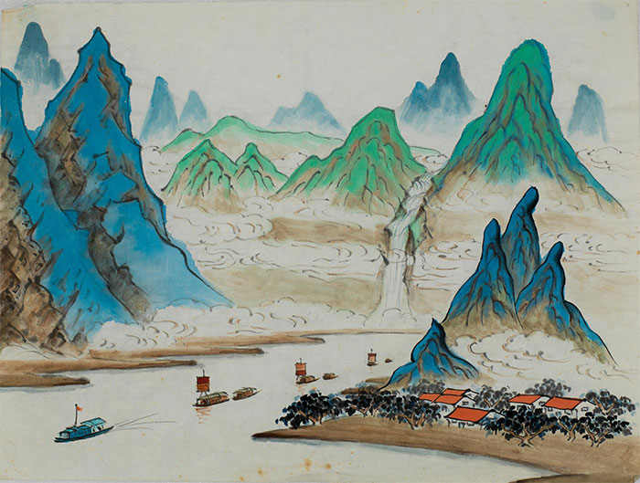 《江上船隊》 1974年 紙本設色 29×38.5cm