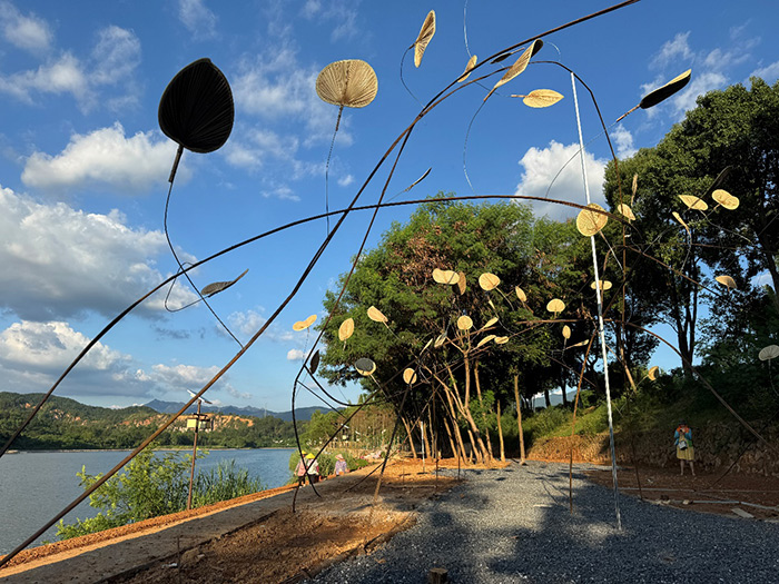 與其他大地藝術節偏好大體量、強調與環境強烈對比的表達方式不同,蕉嶺藝術季的作品并非外來植入的展品,而是從蕉嶺山水、人文與記憶中“生長” 的生命體,它們以輕柔的姿態觸碰蕉嶺的大地、天空、溪流、草木、古墟、客家老屋的記憶,在細膩的凝望中展開一場與自然和在地文化的持久對話。正如策展人殷嫣強調的本次藝術季“萬物自得”的理念,她認為,藝術從來不是高高在上的創造,而是從土地生長出來的溫度,是人與人,人與自然之間的相望與相知。