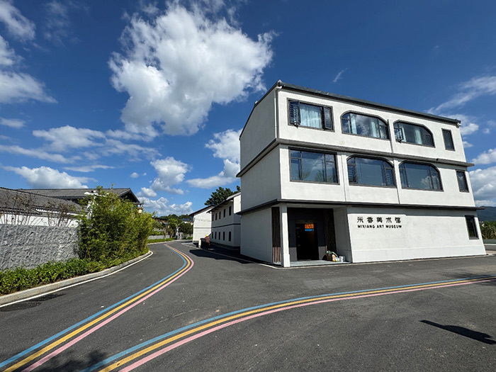 長潭鎮白馬村的米香中心,是眾多游客必到的打卡點。這是一座以客家民居建筑風格為底色的民宿,米香中心四周環境優美:前方是大片碧綠的稻田,青澀的稻穗隨風搖曳;遠方群山起伏,白墻灰瓦的客家民居點綴在蕉林間。行走在田間小徑上,空氣中彌漫著稻香,天地靜謐安然。稻田之間,藝術家許鐘敏、刁勇、袁澤強、楊千等藝術家的作品,將這片南國田園的詩意與浪漫呈現得淋漓盡致。
