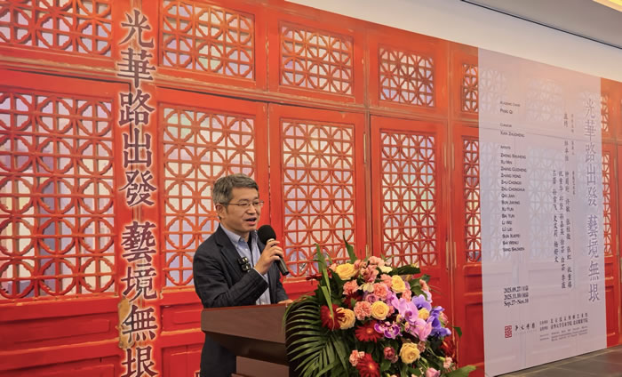 本次展覽學術主持龐綺女士在發言中深情回顧了"光華路"作為藝術生命起點的精神意義,她說到:"'光華路'是我們刻在骨子里的基因。幾十年后的今天,我們能因這份共同的基因再次聚首并肩,這本身就是一個關于熱愛、關于堅守、關于初心不滅的故事。"她特別現場朗誦了中央工藝美術學院創始人龐薰琹先生于1981年發表于院刊《光華路》的詩句節選:
