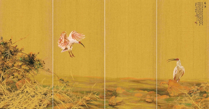 曹?。?/strong>中國傳統繪畫有兩種載體,一種是絹,一種是紙,我選的是金箋,它同時具有絹和紙的特點。它有纖維附著在上面,像絲質一樣,但碰到了水,它又具有紙的特性。任伯年曾經用過這個材料,但大多數畫家覺得太費勁了,它需要很多技術性的要求。