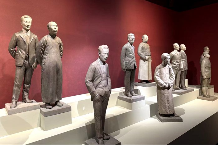以故宮文物南遷過程中的代表性人物為主題的《“功侔魯壁”人物群雕》作者:劉愷(攝影:許柏成)