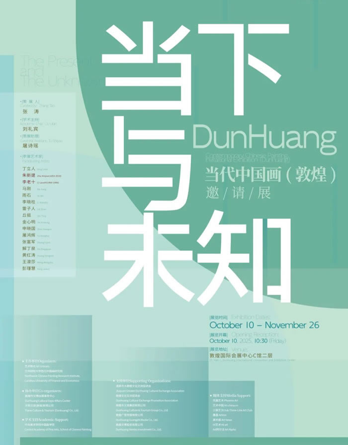 2025年10月10日,由中央美術學院、中國畫學院和甘肅畫院作為學術支持,藝術糧倉創始人張濤策劃,中央美術學院教授劉禮賓擔任學術主持的《當下與未知》當代中國畫(敦煌)邀請展在敦煌國際會展中心啟幕。此次展覽特別邀請十六位在當代中國畫具有代表性的藝術家,攜近百余幅作品進行展出。