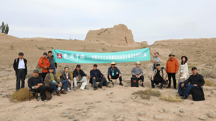 秋日的甘肅,是一幅鋪展在天地之間的巨幅畫卷,集黃河之雄、戈壁之蒼、丹霞之絢、石窟之邃于一體。9月29日至10月5日,“走遍中國——中國文化藝術發展促進會美術家寫生創作行動”第二階段甘肅段,在這片底蘊深厚的土地上徐徐展開。中國文化藝術發展促進會主席楊曉陽、“走遍中國”項目執委會主任張江舟攜手程大利、孔紫、老圃、張立柱、馬海方、陳鈺銘、任惠中、陳琪、李偉、尚可、巫衛東以及邢斯恬和當地藝術家等一眾藝壇名家及中國文化藝術發展促進會監事長杜偉、秘書長趙長海組成的寫生團,自景泰黃河石林啟程,經張掖歷史遺跡與自然奇觀,最終抵達敦煌藝術圣殿,完成了一次跨越地理與時空的文化藝術遠征,為中國當代美術的“山河敘事”寫下了濃重而精彩的一筆。