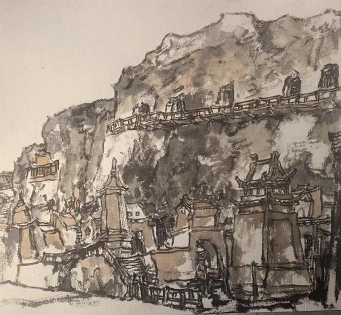 李偉《榆林窟寫生》45cm×50cm 2025年