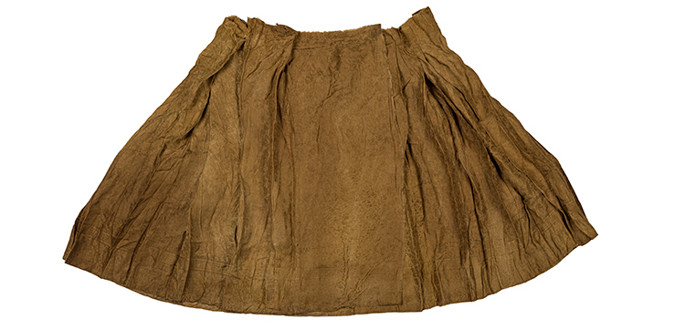 黃褐色綢地織靈芝竹葉紋馬面裙 明 長83厘米 寬123厘米 上饒市博物館藏 2016年江西省上饒市廣信區白嶺明墓出土