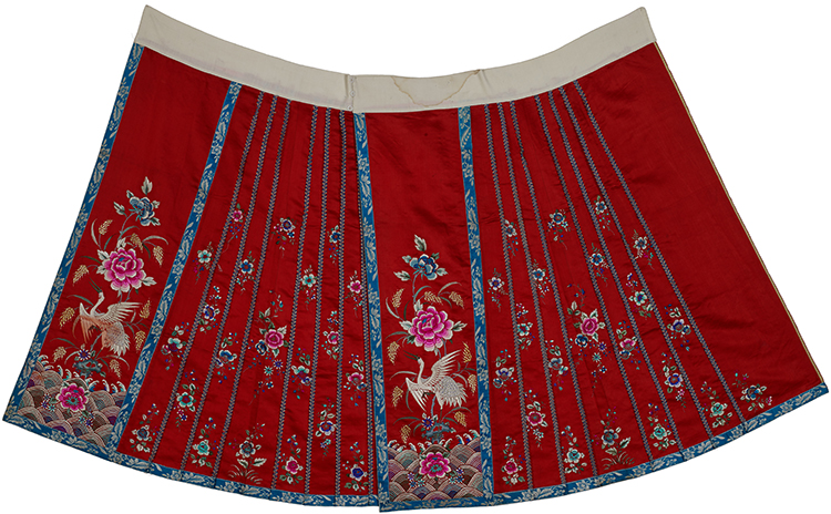 紅色緞地繡海水鶴穗紋紅喜裙 二十世紀初 長90.5厘米 寬115厘米 北京服裝學院民族服飾博物館藏