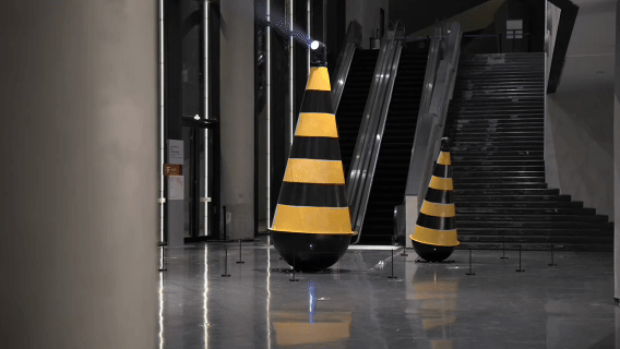 《等待》張藝 鐵板、電機、交通反光漆、探照燈、反光貼紙尺寸可變