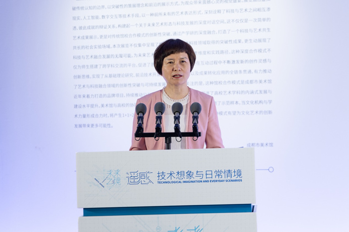 電子科技大學黨委書記曹萍在致辭中表示,電子科大在“雙一流”建設中錨定“科技鑄基、藝術賦能”的創新路徑,從創設iArt交互新媒體輔修專業,到今年啟動全國首個“電子信息工程+實驗藝術”跨省跨校聯合學士學位項目,兩校六載合作累計培育了百余件大型新媒體作品,為“數字中國”戰略培育跨學科復合型人才提供了“成電 ·川美”范式。