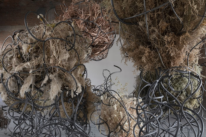 楊心廣,“勇士”系列局部,植物、鋼筋、水性封閉漆,2023。圖片由藝術家和北京公社提供。