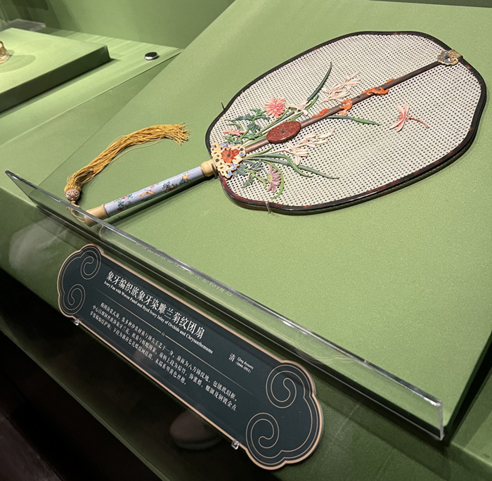 象牙編織嵌象牙染雕蘭菊紋團扇,清
