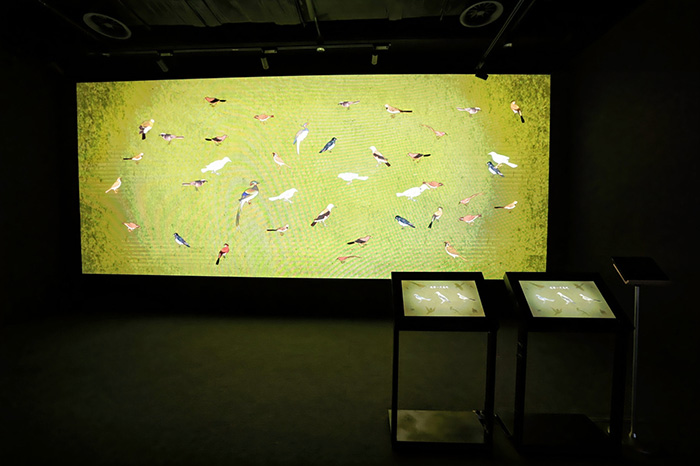 靳軍團隊《描摹與共生:今日珍禽圖》互動影像裝置 7m×3m 2025年