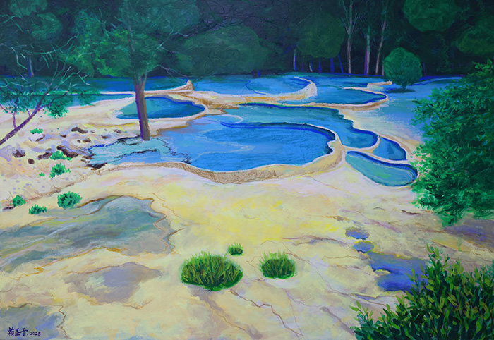 賴圣予《春來湖水綠如藍》綜合材料 110cm×160cm 2025年