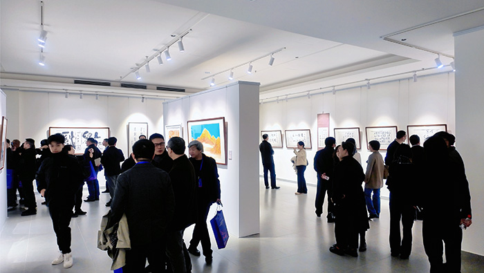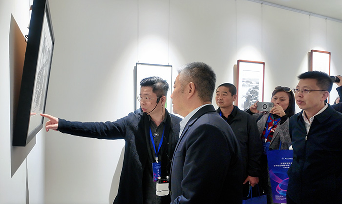 隨后,學校向參展藝術家代表頒發了作品收藏證書、參展證書及駐校藝術家聘書。開幕式結束后,“丹青繪盛世·筆墨啟新篇:特藏精品展”策展人賴盛、“光影蒼穹:數字藝術展”策展人葉風為現場嘉賓與師生進行了導覽。