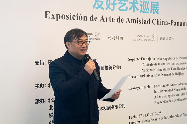 北京師范大學藝術與傳媒學院副院長甄巍教授從學術角度解讀了展覽的價值,他指出:展覽中的中國作品既延續了傳統水墨的精神內核,又融入了當代藝術的創新表達;而巴拿馬作品則展現出熱帶文化特有的生命力與創造力。這種藝術對話不僅拓展了觀眾的審美視野,也為中巴友誼展開了新的畫卷。