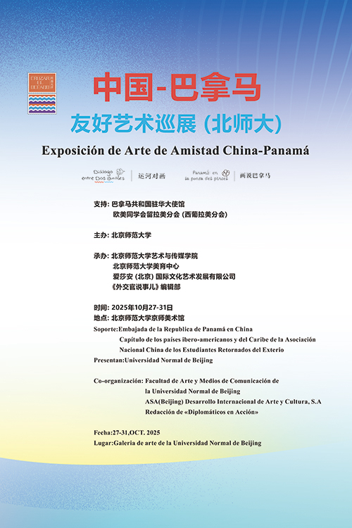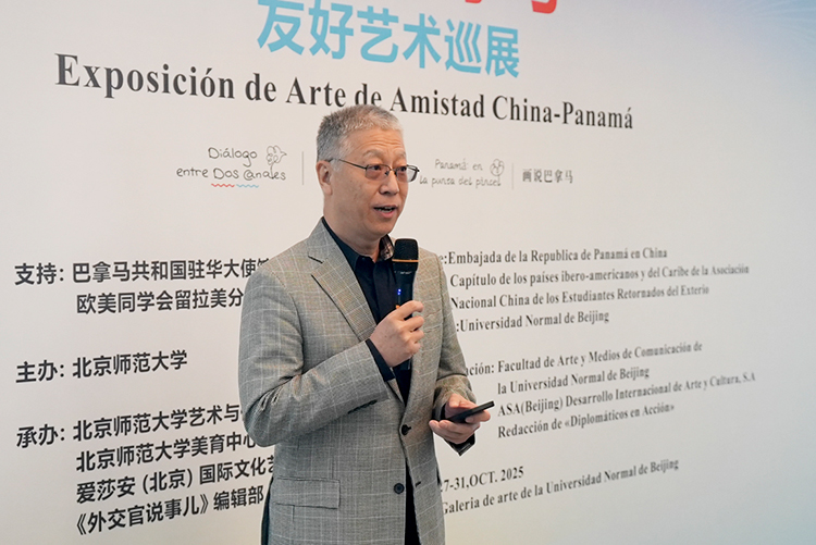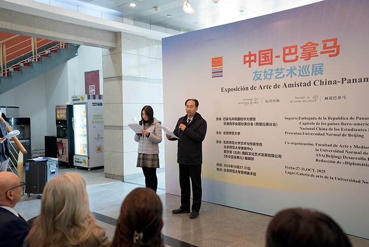2025年10月27日下午,“中國-巴拿馬友好藝術巡展”在北京師范大學藝術樓京師美術館開幕。本次展覽以“運河對畫”和“畫說巴拿馬”為主題,通過藝術的語言構建起中巴兩國文化交流的橋梁,為金秋的北京增添了一抹亮麗的文化色彩。