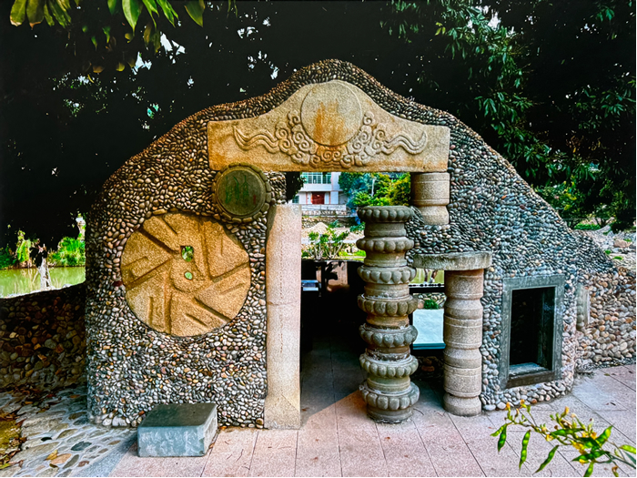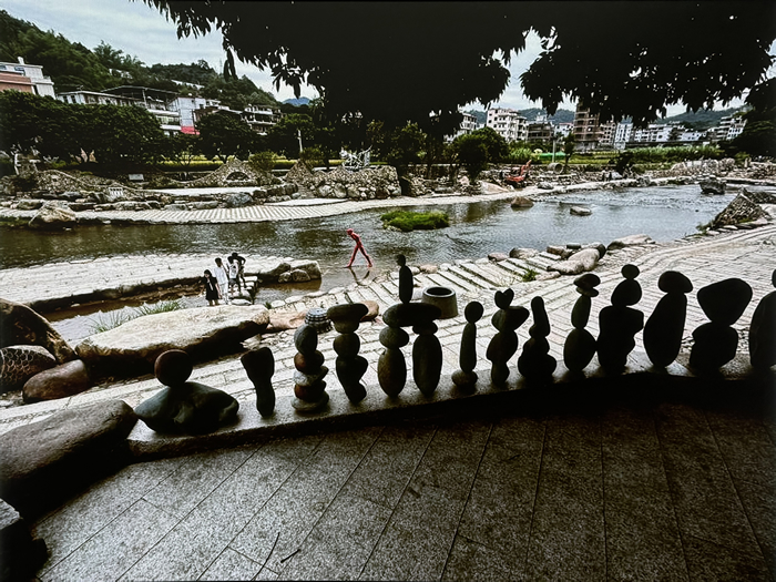 從2021 年開始,藝術家陳文令自籌資金,帶領團隊在家鄉福建泉州安溪縣金谷打造了大型藝術鄉村振興項目——金谷溪岸藝術公園。這一項目充分結合了自然與文化條件:藝術家以閩南“石跳釘”為靈感,取法中國古代園林“疊山造園”理念,因地制宜,就地取材,依托金谷溪河道、閑置民宅、荔枝林及荒地等,將自然景觀與當代藝術相結合,建設了雕塑藝術長廊、親水工程、溪岸步道、露天茶室、藝術景觀等項目,同時有效保留了古河岸的自然環境和歷史遺存。