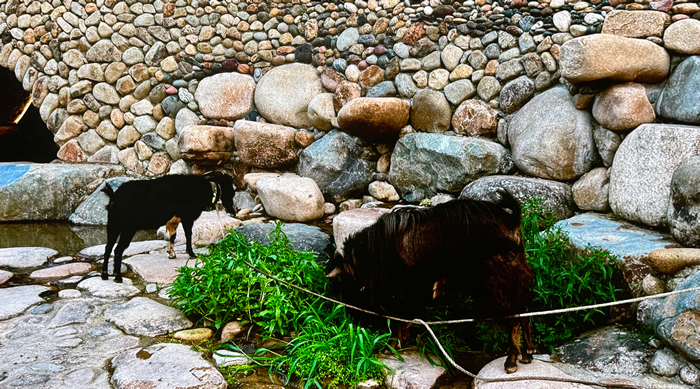 陳文令:我們公園最突出的在地性就是石頭很多,我們不可能舍近求遠去搬木頭、花崗巖、大理石。我就在附近取材,大量降低成本。我們這邊有很多古岸,岸邊留存著我們列祖列宗的東西,我們不會像某些地方拆掉老祖宗的東西,我尊重了傳統的一種建造方式,用溪石,鵝卵石很多,也有很大的石頭,我就繼承了這種材料的物質性。還有尊重地形本身的特點,有些地方本來就是梯田路,為什么要填上一個廣場?村民到溪流旁去洗菜,羊可以去喝水,為什么要拒絕他們下去?