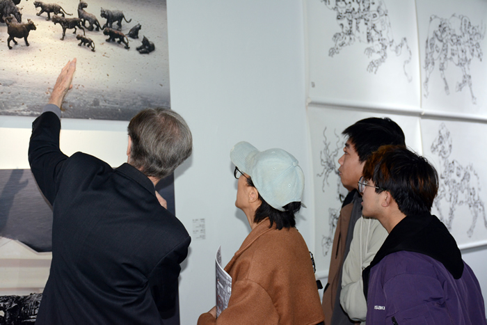 2025年11月1日,《好奇的動物》在北京798國際藝術交流中心拉開帷幕。來自中澳兩國不同年齡段的藝術家伊恩·霍華德(Ian Howard)、邁克爾·肯普森(Michael Kempson)、蘭錦斌、李文旻和邢俊勤,分別以“好奇的動物”“民族主義的動物”“合成的動物”“服務的動物”和“機械的動物”五個板塊,通過木刻、蝕刻版畫、布面油畫、紙本水彩、水墨、多媒體和數碼打印等多種藝術創作形式,以不同形態化的“動物”為主體,激發觀者對人與動物、人與人之間關系的抽象認知,以此反射當代語境下藝術家們對人類生存與行為的深思。