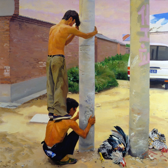 《抓雞》,亞麻布油畫,2003,200×200cm 承蒙私人藏家惠允