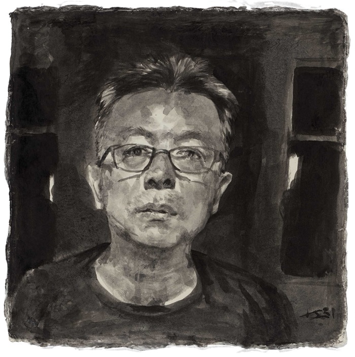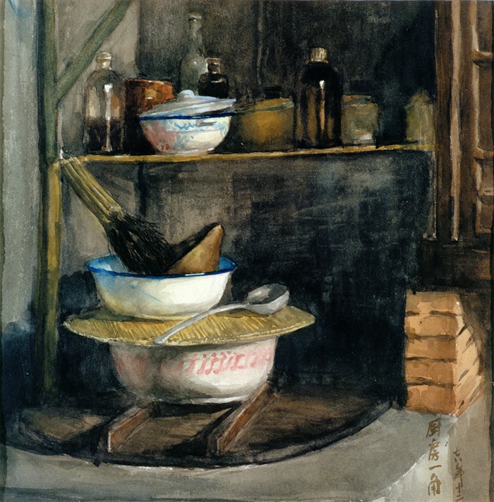 《廚房里的自畫像》,紙上水墨,2021,31×31cm