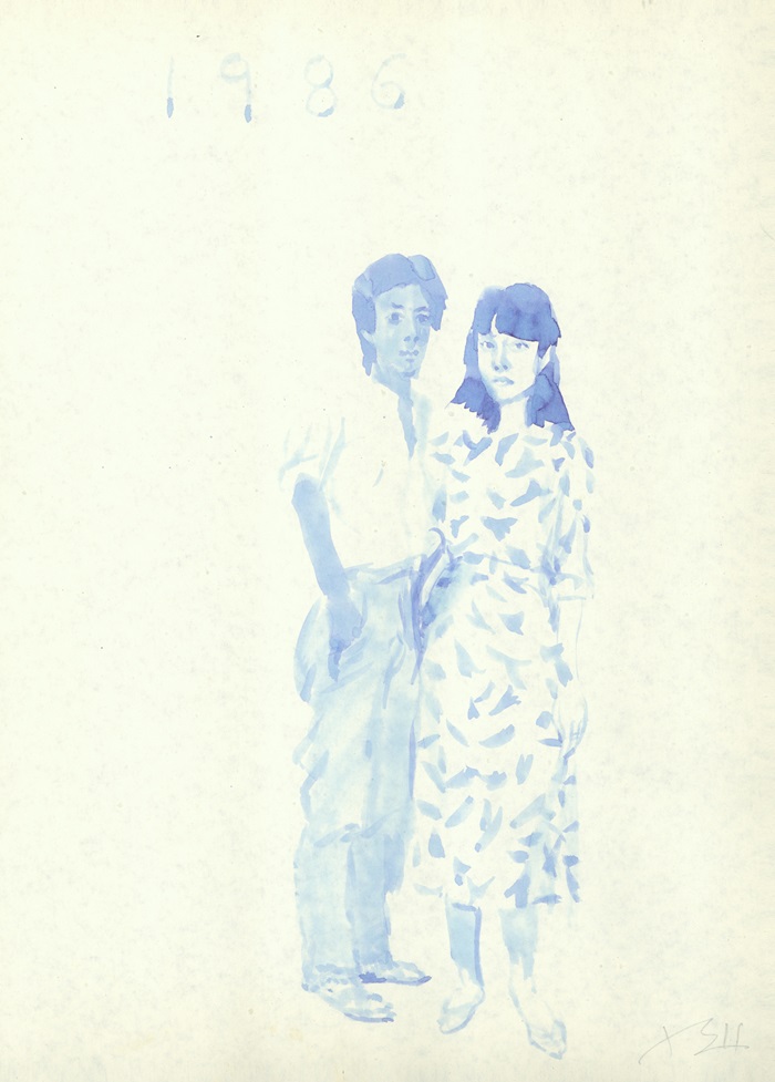《父子》,亞麻布油畫,1989,130×97cm 承蒙劉鋼、陳育夫婦惠允