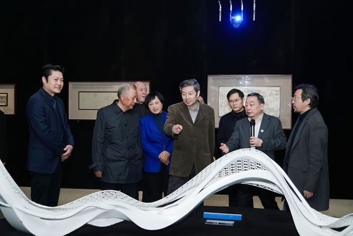 中國文聯黨組成員、副主席、書記處書記諸迪觀看展覽作品《光谷綜合體地面景觀——星河》(湖北美院文化發展有限公司公共藝術作品)